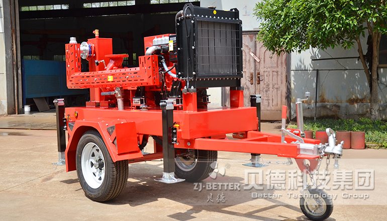 3.單級(jí)式移動(dòng)泵車是中國(guó).貝德科技有限公司在自吸泵的基礎(chǔ)上增加了一套真空輔助裝置,縮短自吸時(shí)間,增強(qiáng)自吸高度,所以也稱為真空輔助自吸泵。