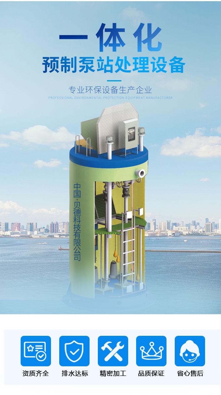 一體化預制式泵站是一款專為解決城市雨水收集和排澇以及城鎮污水提升而設計的新型污水處理設備。泵坑設計帶有一體化的排放連接。泵站為地埋式、泵站主體由泵站筒、潛水泵、耦合裝置、管道、閥門、液位傳感器、控制系統、粉碎型格柵和通風系統等部件組成。是一種使用方便,質量可靠,土建工作少,成本較低的新型一體化泵站設備,容積優化是其顯著的特征,可以作為中小型混凝土泵站的替代品。